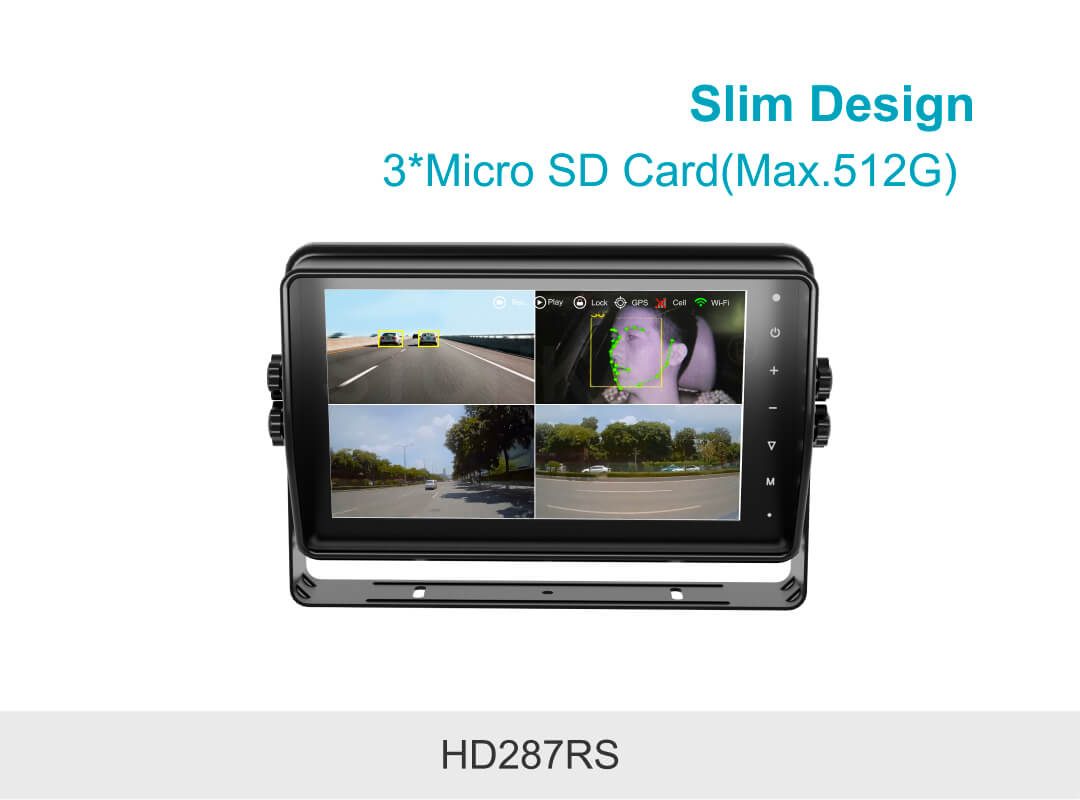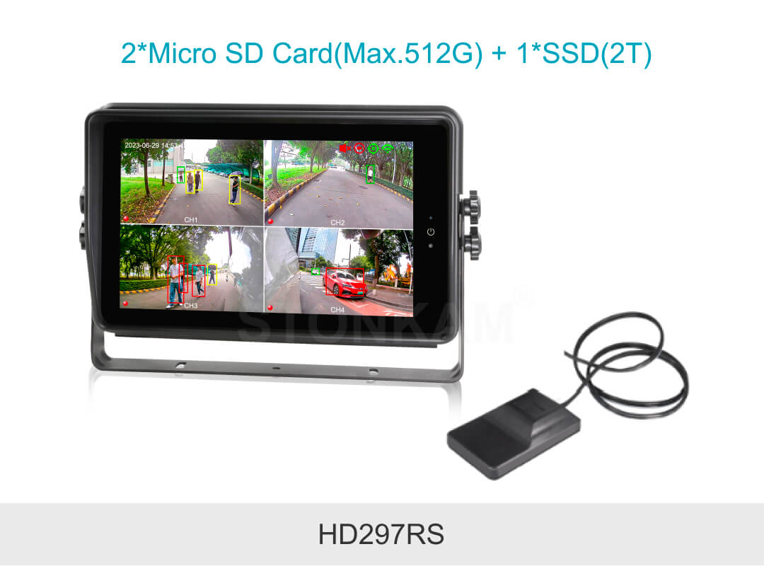 STONKAM® 10.1 inch Intelligent Vehicle Recording Monitor for Pedestrian & Vehicle Detection and Warning adopts deep learning technology, has 4-channel built-in AI algorithm, detecting pedestrian and vehicles all around the vehicle to remind drivers of potential risks and avoid collision, improving driving safety! Meanwhile, it carries GPS/Wi-Fi/4G function,can record HD real-time video and suppoprt cyclic recording without external DVR, with its storage room up to 2 x 512GB (micro SD) + 1*2T (SSD).This helps improve fleet management efficiency. Moreover, t he monitor is IP66 waterproof, capable of working outdoors in rainy and snowy days.