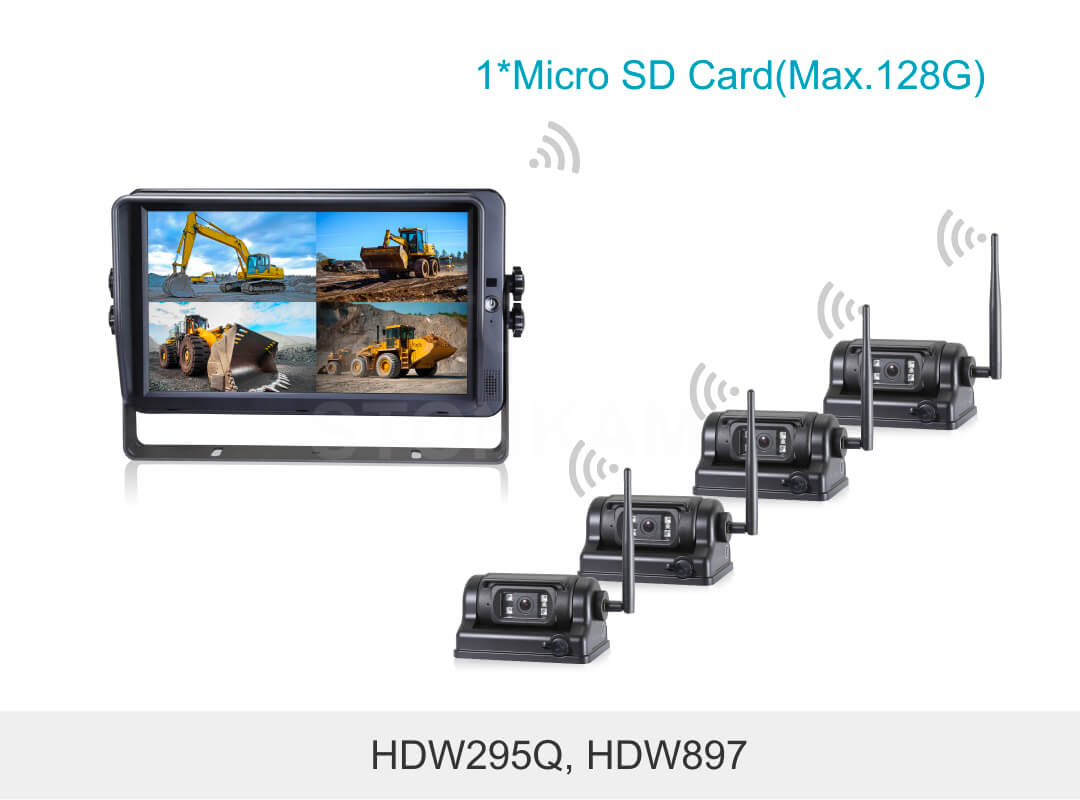 STONKAM 10.1-inch high-definition vehicle wireless video surveillance system is easy to install. The monitor has the touch screen and recording function, and the camera has a magnetic base, making the installation simple and convenient. The transmission distance in open area is 300meters (984ft), and the signal is stable and anti-interference. This system is suitable for trucks, forklift trucks, bulldozers, cranes, and other kinds of vehicles.