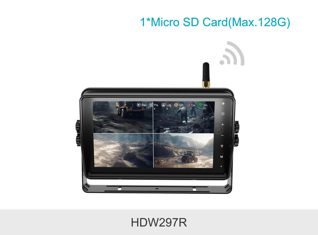 The STONKAM 10.1-inch HD quad-view wireless vehicle monitoring and video-recording display is built with an IP66-rated waterproof housing and integrates both recording and touchscreen capabilities. It boasts a clear transmission range of up to 590ft, delivering stable signal performance with excellent anti-interference properties. Supporting multiple screen display modes, it is ideally suited for a wide range of vehicles including trucks, forklifts, and mining dump trucks.