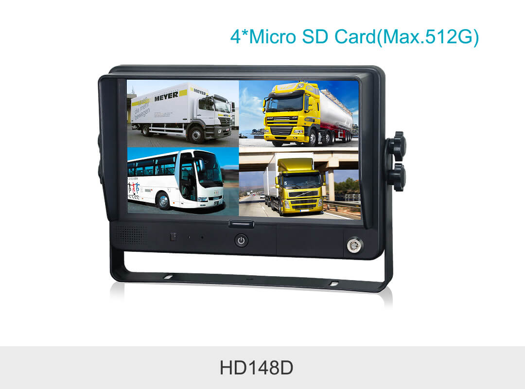 STONKAM 9 inch HD touch-screen Quad-view recording monitor, in-vehicle plus monitor functions, standing for a major technical upgrade in in-vehicle monitor industry. It supports 4CH HD cameras input which allows the driver to see directly the environment around the vehicle while driving. This can reduce the possibilities of scratch and other accidents. This HD monitor can realize HD real-time monitoring, support GPS input, thus facilitates efficient fleet management.