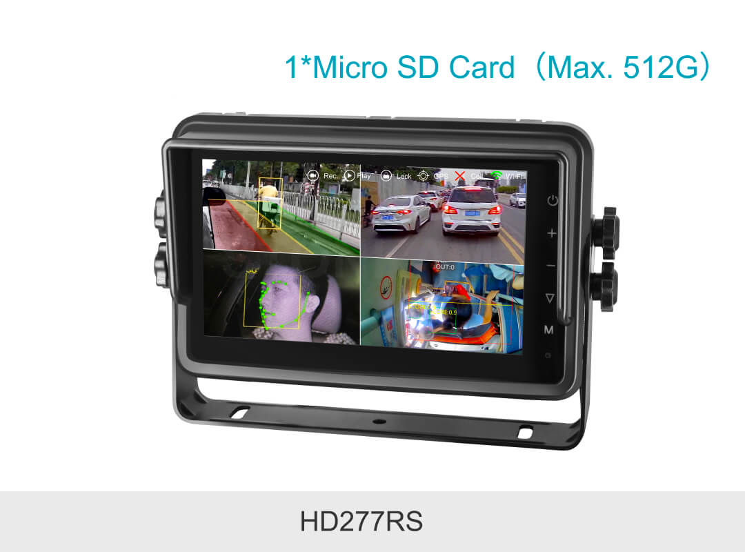 7 inch Intelligent Vehicle Recording Monitor With Algorithm adopts deep learning technology and supports various algorithms ADAS, BSD, DMS, APC & customized algorithm. It can monitor and detect abnormal situations of pedestrian and vehicles on roads during driving, providing an ideal solution to assist driving. Additionally, the monitor is built-in modules GPS/Wi-Fi/4G, so there is no need for an extra DVR. It supports high-definition real-time recording and automatic loop recording, with storage capacity up to 512GB (TF card), which helps improve fleet management efficiency. Moreover, t he monitor is IP66 waterproof, capable of working outdoors in rainy and snowy days.