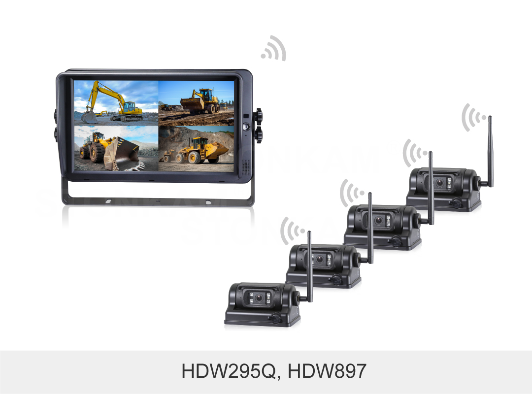 STONKAM 10.1-inch high-definition vehicle wireless video surveillance system is easy to install. The monitor has the touch screen and recording function, and the camera has a magnetic base, making the installation simple and convenient. The transmission distance in open area is 300meters (984ft), and the signal is stable and anti-interference. This system is suitable for trucks, forklift trucks, bulldozers, cranes, and other kinds of vehicles.