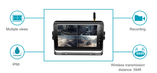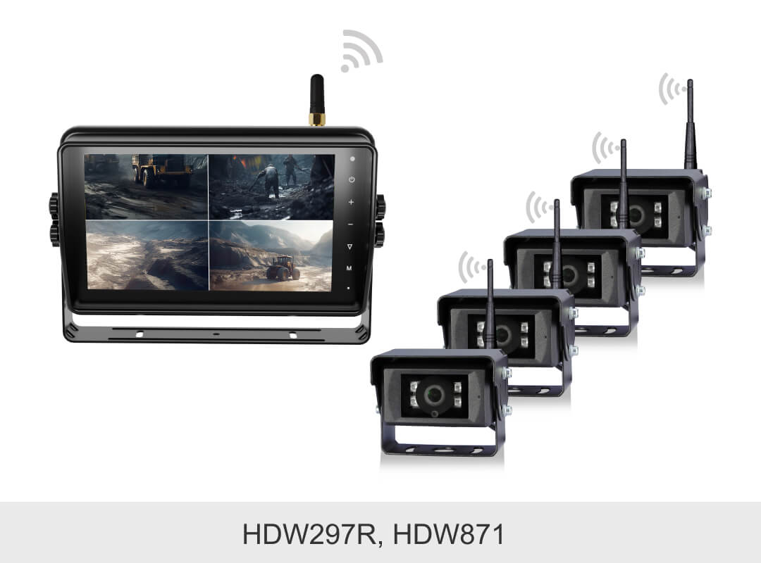 The STONKAM 10.1-inch HD quad-view wireless vehicle monitoring and video-recording display is built with an IP66-rated waterproof housing and integrates both recording and touchscreen capabilities. It boasts a clear transmission range of up to 590ft, delivering stable signal performance with excellent anti-interference properties. Supporting multiple screen display modes, it is ideally suited for a wide range of vehicles including trucks, forklifts, and mining dump trucks.