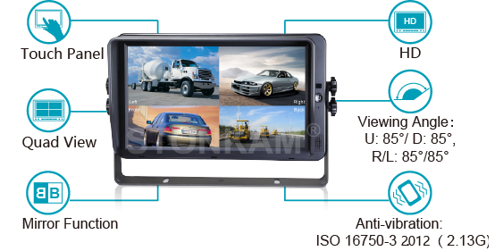 HD Security System with 10.1-inch HD Quad-view Vehicle Monitor support 4CH x 1080P or 720P cameras,etc.
